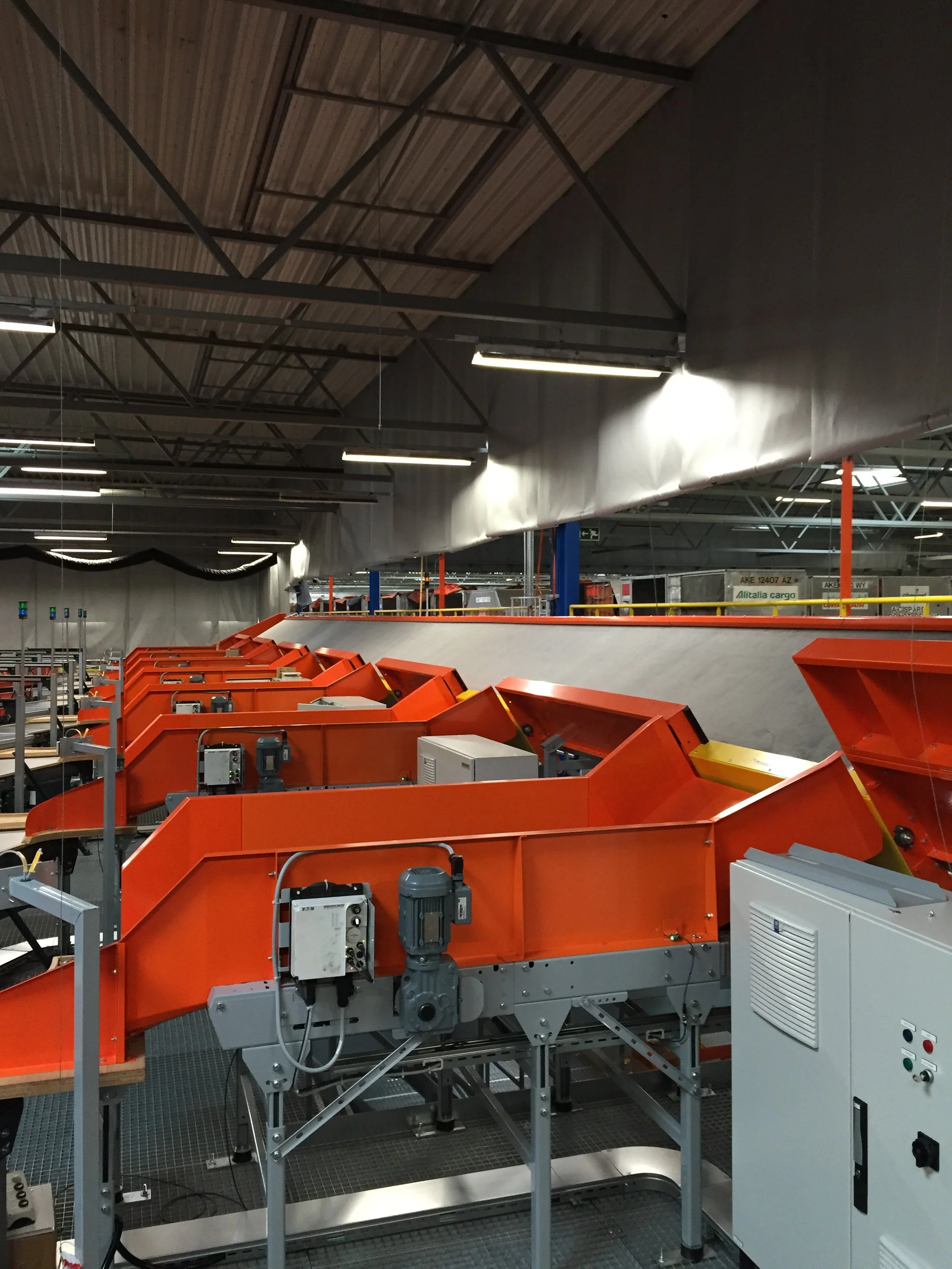 Postal and parcel flows are an increasingly important part of modern air cargo operations. Moderniek develops systems that automate the unloading, transport and sorting of postal bags and parcel shipments.